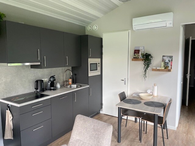 La casa tiene todas las comodidades y ofrece vistas al agua. Con no menos de cinco terrazas, incluidos dos porches atmosféricos, uno con estufa de leña, siempre hay un lugar para relajarse. El baño tiene una hermosa ducha de lluvia. En la planta baja encontrarás un amplio dormitorio con una cama tamaño king y una cama individual. En el primer piso hay una cama doble en un espacio abierto separado. ¡El gran jardín es perfecto para jugar al fútbol o al bádminton!