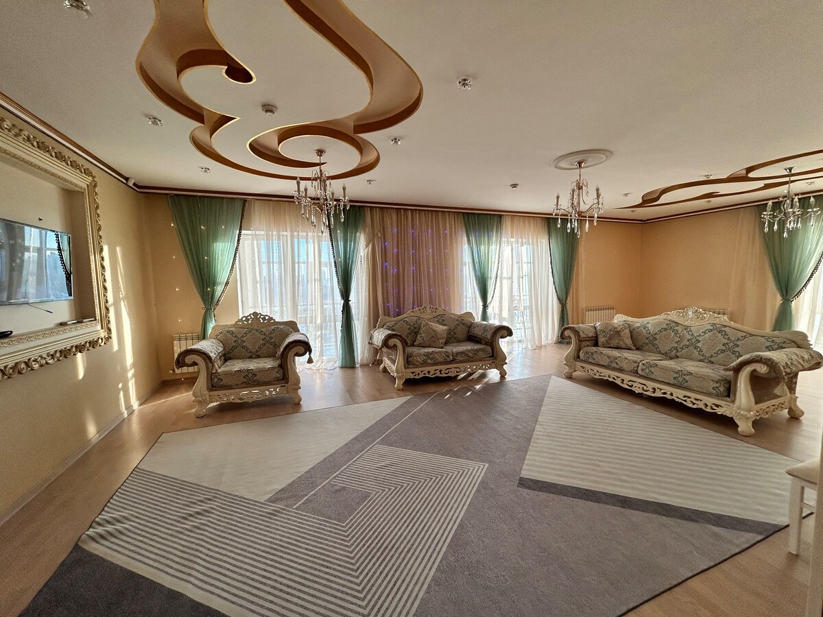Спокойное жилье для расслабленного семейного отдыха.Почувсвуйте себя как дома ,находясь в далеке от него !В апартаментах продумано все до мелочей ,имеется все для комфортного проживания. Кровать king size, с ортопедическим хорошим матрасом. Имеются две рабочие зоны с разных комнатах Находится в центре ,но в тоже время спальном районе .Рядом есть огромный президентский парк, Ак орда ,монумент Байтерек ,множество хороших ресторанов,химчистка ,ателье ,салоны красоты и.т.д.