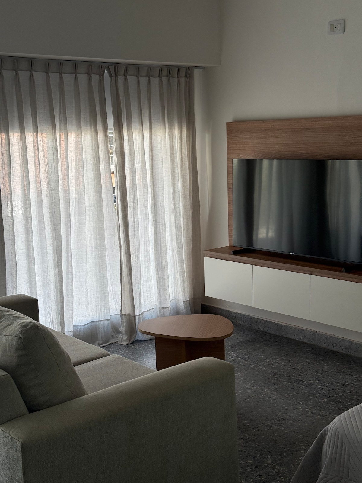Disfrutá de una estadía confortable en este hermoso departamento de un dormitorio. Cuenta con una cocina-comedor amplia y totalmente equipada. El espacio es muy luminoso y ofrece una vista directa a un parque, lo que brinda un ambiente tranquilo y relajante. El departamento esta equipado con todo lo necesario para que te sientas como en casa: utensilios de cocina, vajilla, ropa de cama, toallas, Wi-Fi y más. ¡Listo para que solo tengas que preocuparte por disfrutar tu estadía!