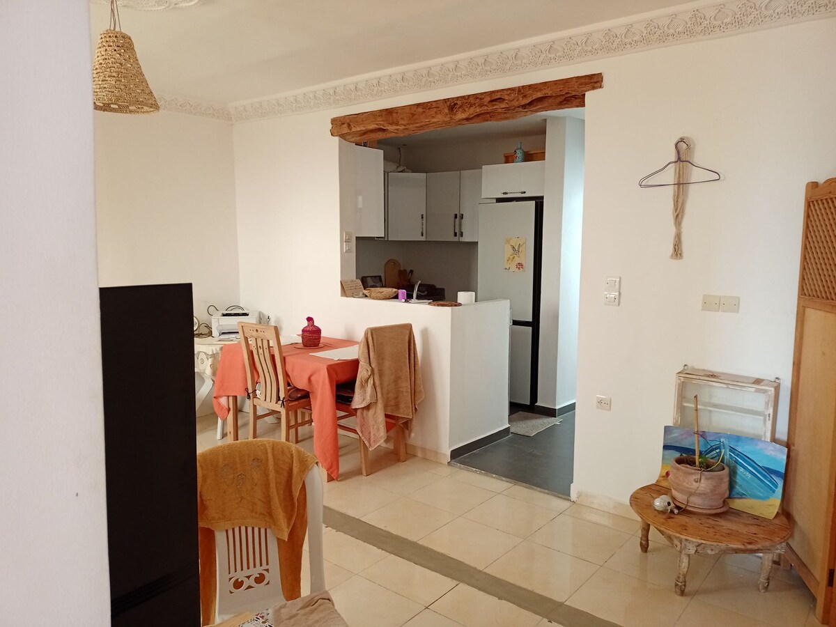 Bonito apartamento de 2 habitaciones situado a las puertas de Medina, la antigua ciudad de Essaouira. Barrio muy céntrico, todas las tiendas, comodidades y monumentos de la ciudad accesibles a pie, así como el puerto, el océano y las playas. Bien comunicado por transporte público: autobús, taxi, supratour, la estación de autobuses a 5 minutos a pie. El apartamento está situado en la última planta de un pequeño edificio moderno bien cuidado y disfruta de una gran terraza soleada con vistas abiertas.