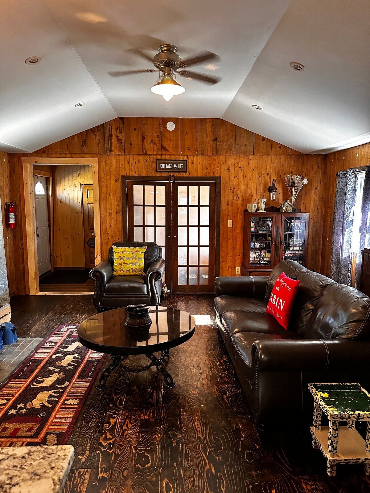 Una escapada única y tranquila en el bosque, ubicada en una granja de árboles de Navidad de 16 acres, a 15 minutos de Windsor y los pueblos de los alrededores. Esta suite privada inferior, parte de la casa principal, tiene su propia entrada y espacio para 4 personas con cocina/sala de estar de concepto abierto con chimenea eléctrica, 2 futones/camas dobles con colchones de espuma viscoelástica, colchón Queen Juno en el dormitorio y baño de 3 piezas. Disfrutá de un patio amueblado privado cubierto con fogata o relajate en un jacuzzi privado (con red) en un segundo patio cerrado
