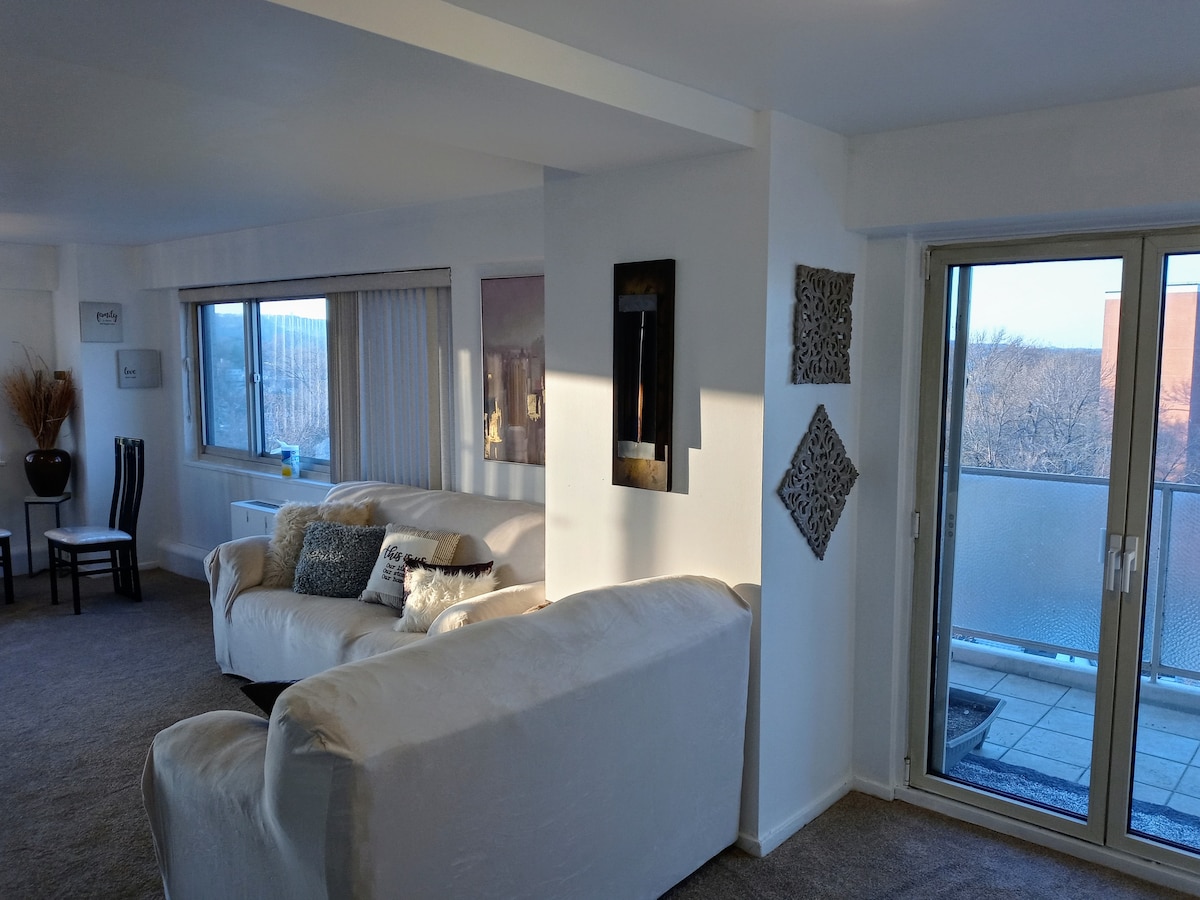 **Bright & Stylish Private Room – Ideal for NYC Weekend Getaways!** Enjoy a private bedroom and bathroom in a modern, luxury condo. Located in a lively, walkable university neighborhood, just 7 minutes from the train station (3 stops to Penn Station). Easy access to Midtown, Downtown, and WTC. Starbucks, Panera, Cold Stone, CVS, and more are all within a 5-minute walk. Free parking, modern comforts, and a safe, welcoming community. Perfect for both relaxation and easy city exploration!
