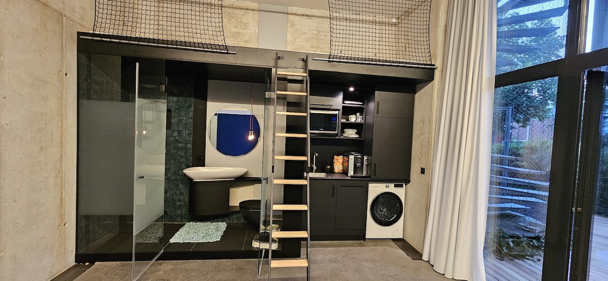 El apartamento de diseño de 46 m², totalmente equipado y construido en 2023 en el ambiente de nuestro histórico edificio de fábrica, es su base de operaciones en Stuttgart y combina una sensación de loft única con el confort de vida más moderno. Tren urbano, tren de cercanías, autobús, carretera federal: la conexión con el centro de Stuttgart (10 min), con la sede de Mercedes-Benz (5 min) o con la región es óptima. Cama con somier de primera calidad, cocina de diseño totalmente equipada, amplio espacio de trabajo con ventana y exclusivo baño con luz natural.