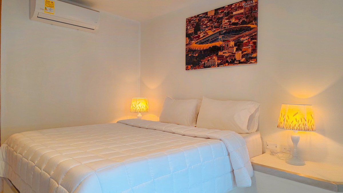 Hospédate en una habitación privada con cómoda cama doble, baño propio, aire acondicionado, TV, minibar y wifi rápido. La reserva incluye acceso a las zonas comunes: cocina equipada con cafetera, terraza y hamaca. Contamos con vigilancia 24/7 y restaurante en el hotel. No tenemos parqueadero, pero te recomendamos uno cercano (costo aparte). Ideal para viajes de trabajo o descanso en el norte de Cali.