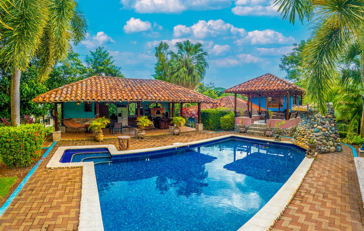 Frente al mar. A solo 2 horas del Aeropuerto Juan Santamaría. Disfrute de una espectacular vista y el sonido del mar, mientras esta en la piscina, desayunado o descansando. Excelente para surf. Con marea baja se forman piscinas de arrecifes seguras para los niños, ideales para snorkeling. Las iguanas, guacamayas de colores y cangrejos son parte de entorno. Cerca de sitios de canopy, diving y pesca. Hasta 6 personas incluye 2 habitaciones, de 7 a 8 personas 3 habitaciones
