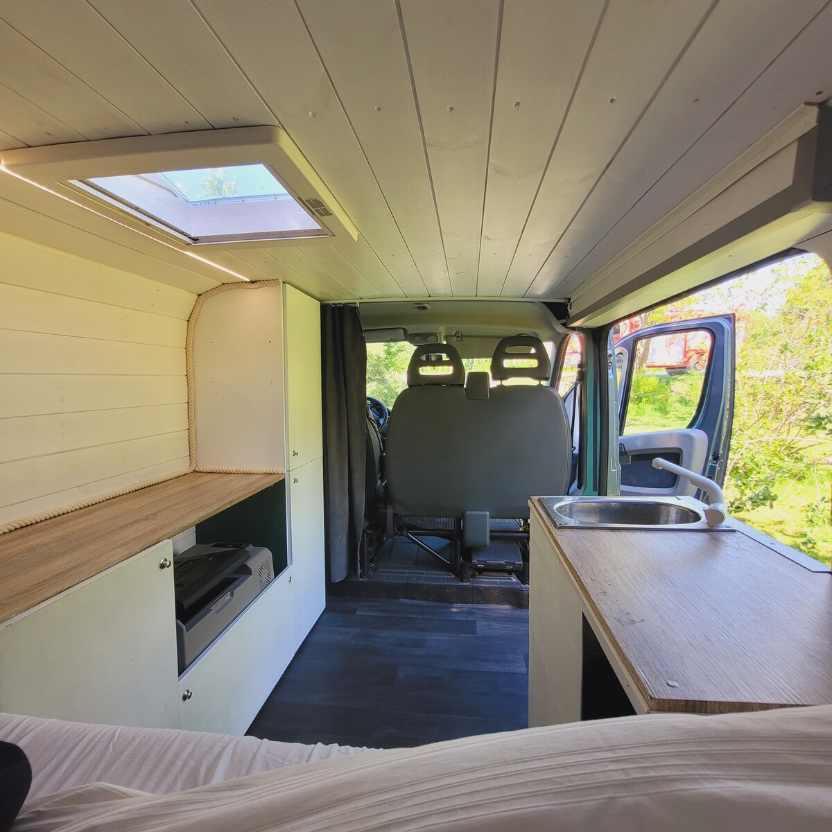 2 magamiskohta, 3 istekohta. Olemas väike matka gaasipliit, USB-laadimiskoht, Webasto, kraanivesi(20l), külmik. Elekter tuleb kaubiku katusel asuvast päikesepaneelist. Pesemisvõimalust pakub väljaspool matkaautot kasutatavad matkadušš ja duššitelk. WC-ks on kapis hoiustatav Porta Potty matka wc-pott, eraldi tualettruum puudub. Manuaal käigukast, diiselkütus, vajab B-kategooria juhtimisõigust. Rendileping, tagatisraha 200 eurot, mis tagastatakse auto tagastamisel ja pretensioonide puudumisel.