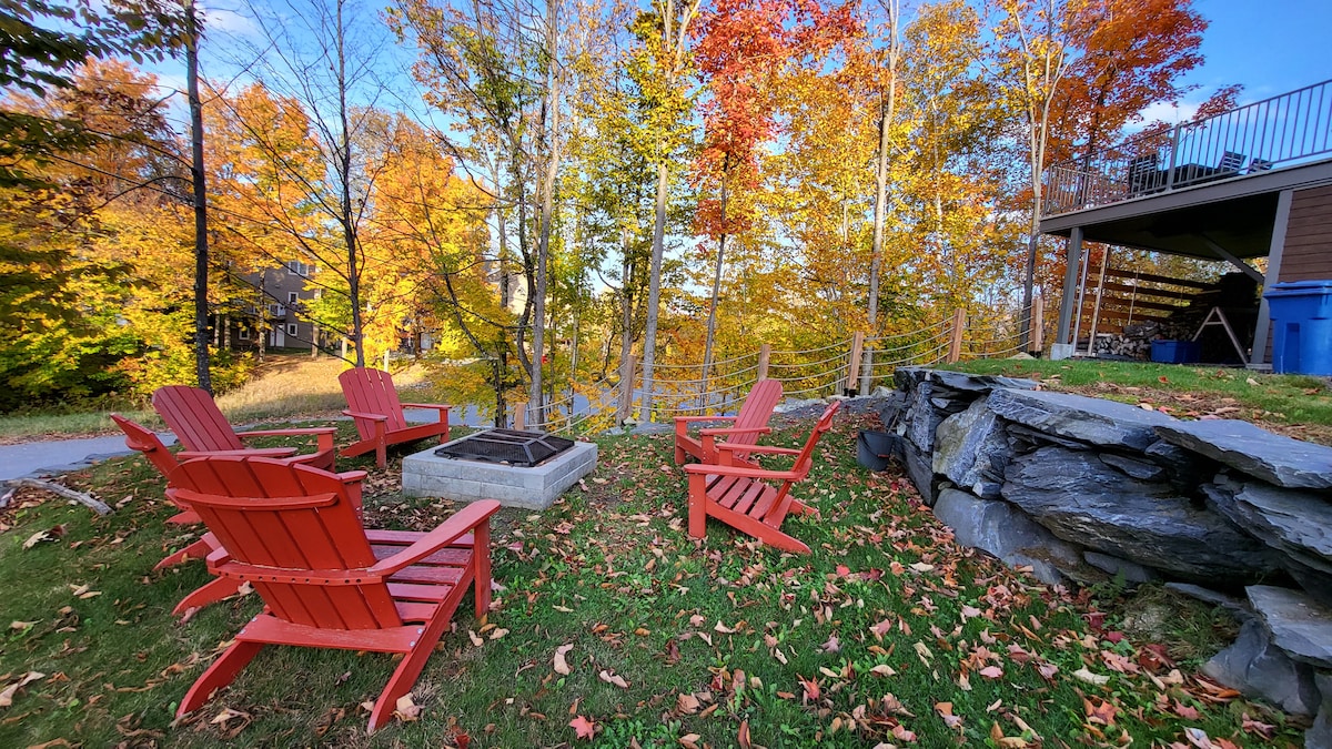 Maison contemporaine jumelée nichée dans les pentes de Owl's Head et parfaite pour des vacances plein air, de ski ou de golf ! Vous partez en ski et la piste est à quelques secondes ! Le golf est aussi à proximité, alors vous pourrez choisir votre sport préféré. Il s'agit d'un grand chalet qui pourra profiter à plusieurs personnes. Rassemblez-vous au salon ou autour de l'aire de feux extérieure avec vue, en toutes saisons. Ici, vous serez entourés d'amateurs de plein air comme vous !