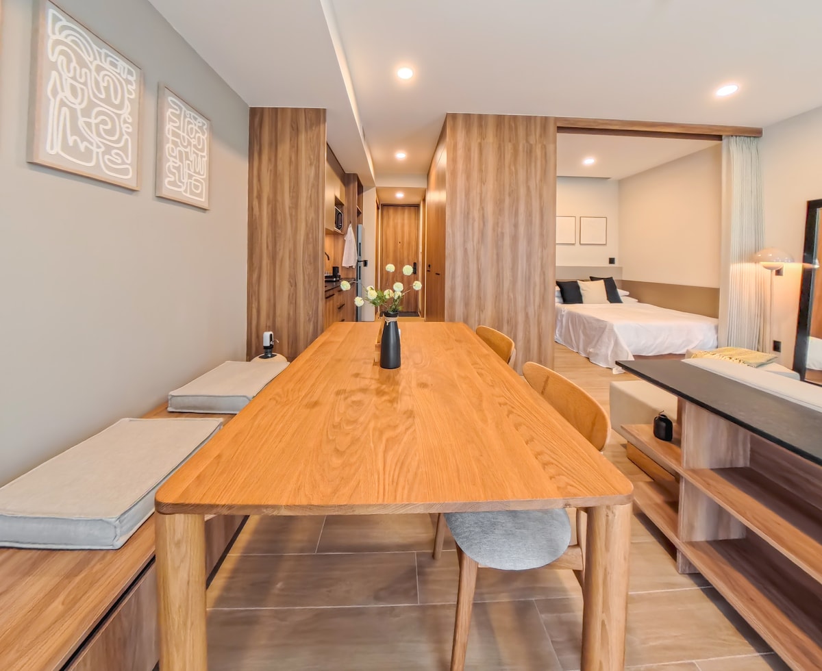 Bienvenidos a este oasis de tranquilidad y diseño contemporáneo! Este moderno departamento cuenta con una decoración exclusiva y un toque artístico que lo hace perfecto para ejecutivos y amantes del diseño. Disfruta de un espacio único donde la estética se combina con la comodidad, proporcionando una experiencia inigualable. ¡Tu refugio ideal para una estancia sofisticada y relajante!