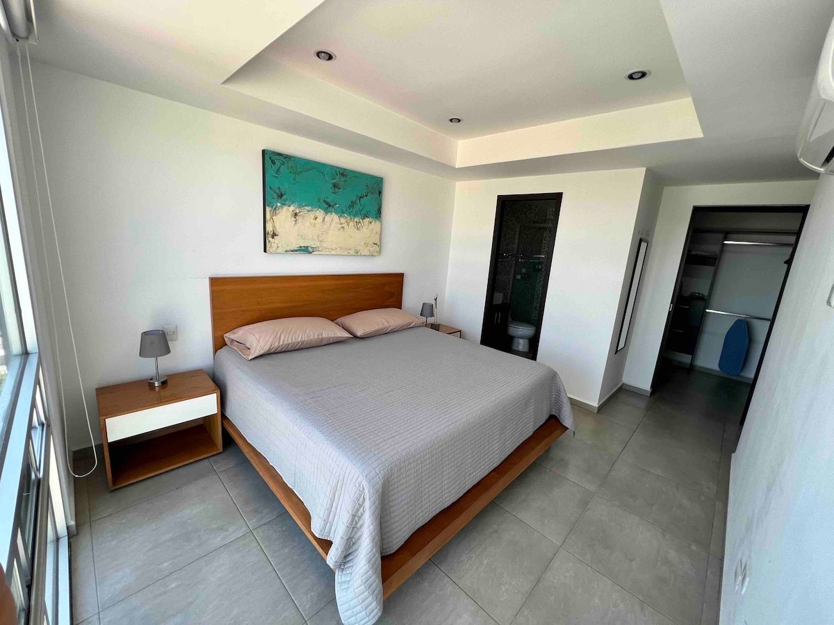 Apartamento espacioso y acogedor, ideal para trabajar con excelente internet 100 Megas. Dos amplios dormitorios, ambos con aire acondicionado, baños completos, vestidor y ventilador de techo. Sala de TV donde puede dormir una quinta persona. Sala+comedor con ventana grande y 4 ventiladores portátiles para moverse por cualquier área. Cocina completamente equipada con vajilla para 6 personas. A los huéspedes anteriores les ha gustado la elegante decoración, comodidades y ubicación privilegiada.