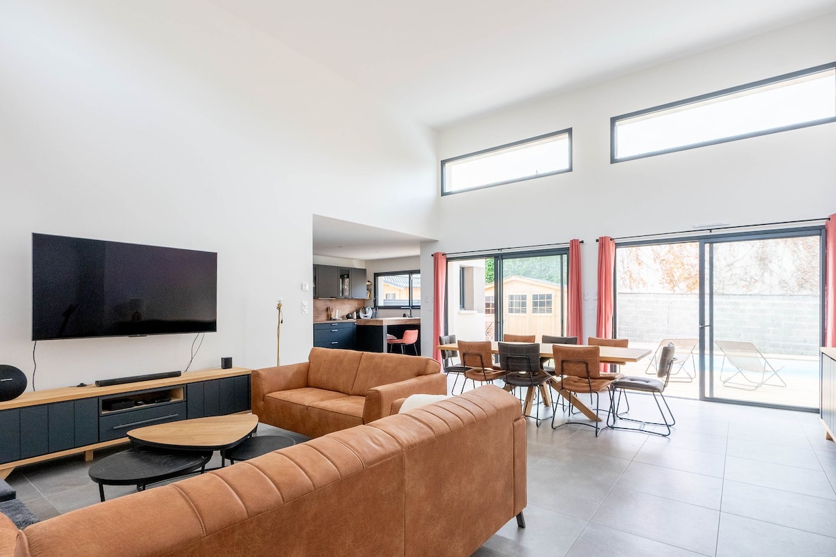 **Bienvenue dans la Villa Gabriel** En famille ou entre amis, cette magnifique Villa vous assurera un séjour inoubliable grâce à ses espaces pensés pour votre confort, sa piscine, la climatisation et sa décoration soignée ! Elle est idéalement située pour vous permettre de profiter de tous les trésors qu'offre la region : centre ville de Bordeaux en 20 min, le bassin à 45 minutes et les vignobles libournais à 35 minutes ! Cimatisation, wifi, et Netflix !