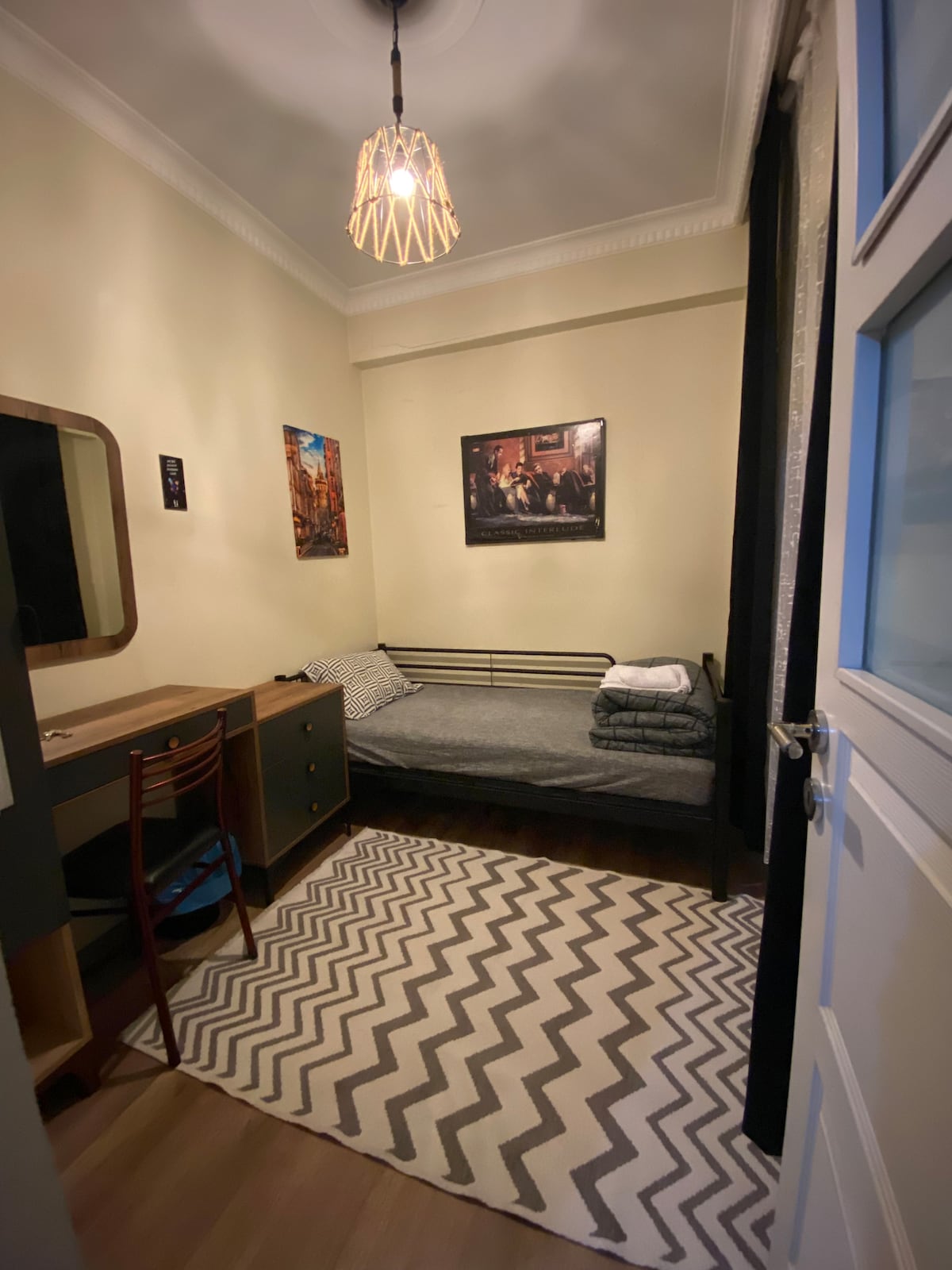 Our historical building is in Beyoglu/Taksim area. Consists 9 separate studios. Keep in mind that this studio is on basement floor includes a private courtyard and there is no special view. There is a kettle, fridge, comp a bottle of water and tea. It’s located in a popular Greek area walkeable to Taksim sq. and Istiklal street. You just need 15mins to Taksim or Sishane metro stations both by foot distance. (Studyo Odamız -1 bodrum katta olduğundan tel hat çekmiyor ama wifi hızlı, sorunsuz)