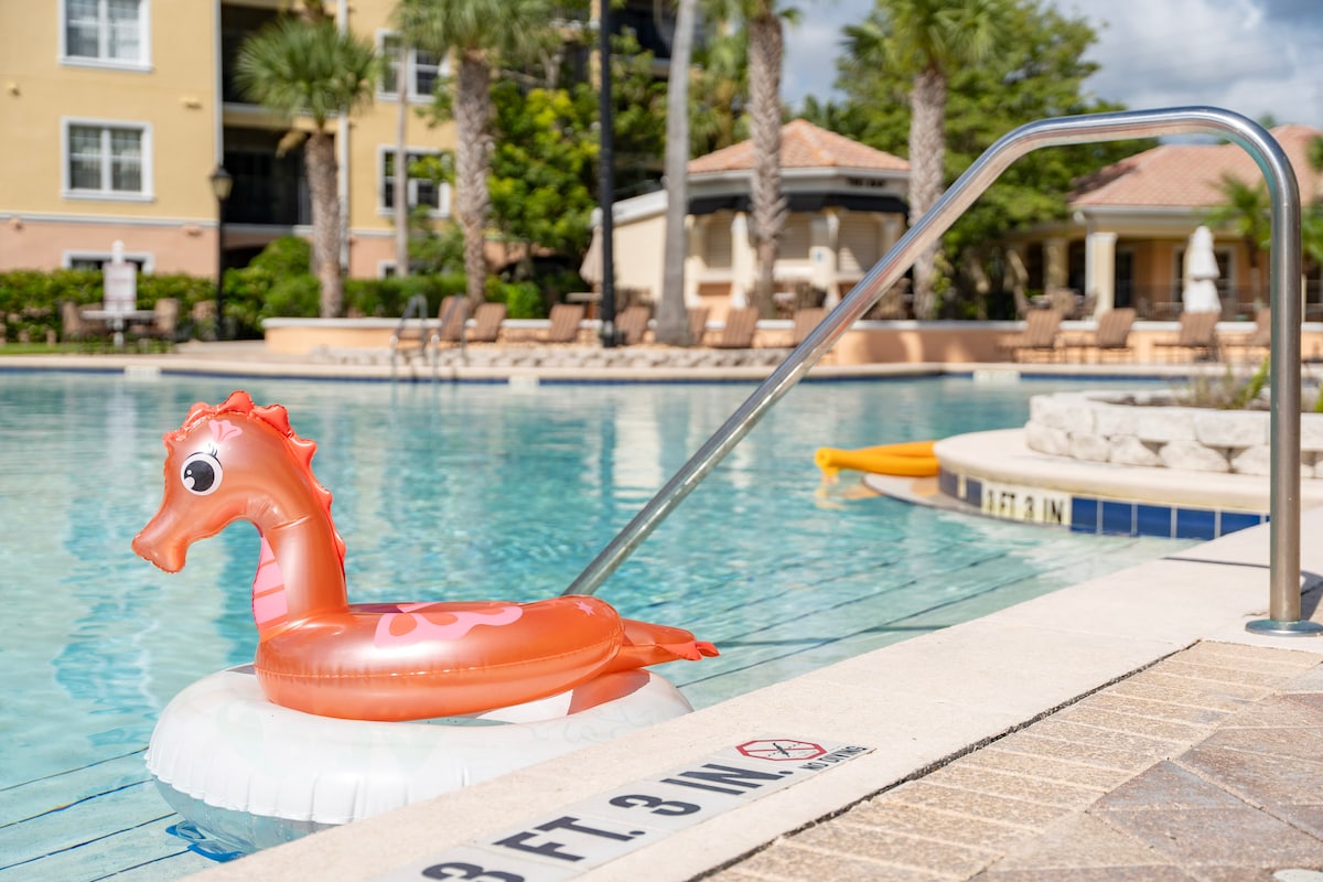 Tu escapada mágica comienza aquí, ¡a solo minutos de los parques temáticos de Disney y Universal! Relájate en tu balcón con vistas al impresionante lago Bryan, date un chapuzón en la piscina climatizada, disfruta de una bebida en el bar Tiki y transmite tus programas favoritos con HBO y Netflix. Conserje para entradas al parque, estacionamiento gratuito, seguridad las 24 horas. Sin depósitos ni tarifas adicionales: ¡solo diversión, sol y recuerdos!