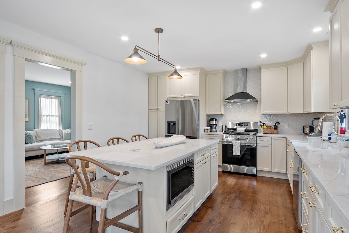 Esta es una casa de campo de dos dormitorios completamente reformada. Tres televisores inteligentes de pantalla plana. Wifi. Azulejos por todas partes. Esta unidad es llave en mano y está totalmente equipada. Hay una sala de estar exterior, un amplio patio trasero privado que incluye una parrilla de gas. La cocina está bien equipada e incluye salpicadero de azulejos, electrodomésticos de acero inoxidable, encimeras de cuarzo y mucho más. Estamos a media manzana de la calle principal, a dos manzanas del puerto y de los transbordadores de Martha's Vineyard. También estamos a menos de una milla del mar.