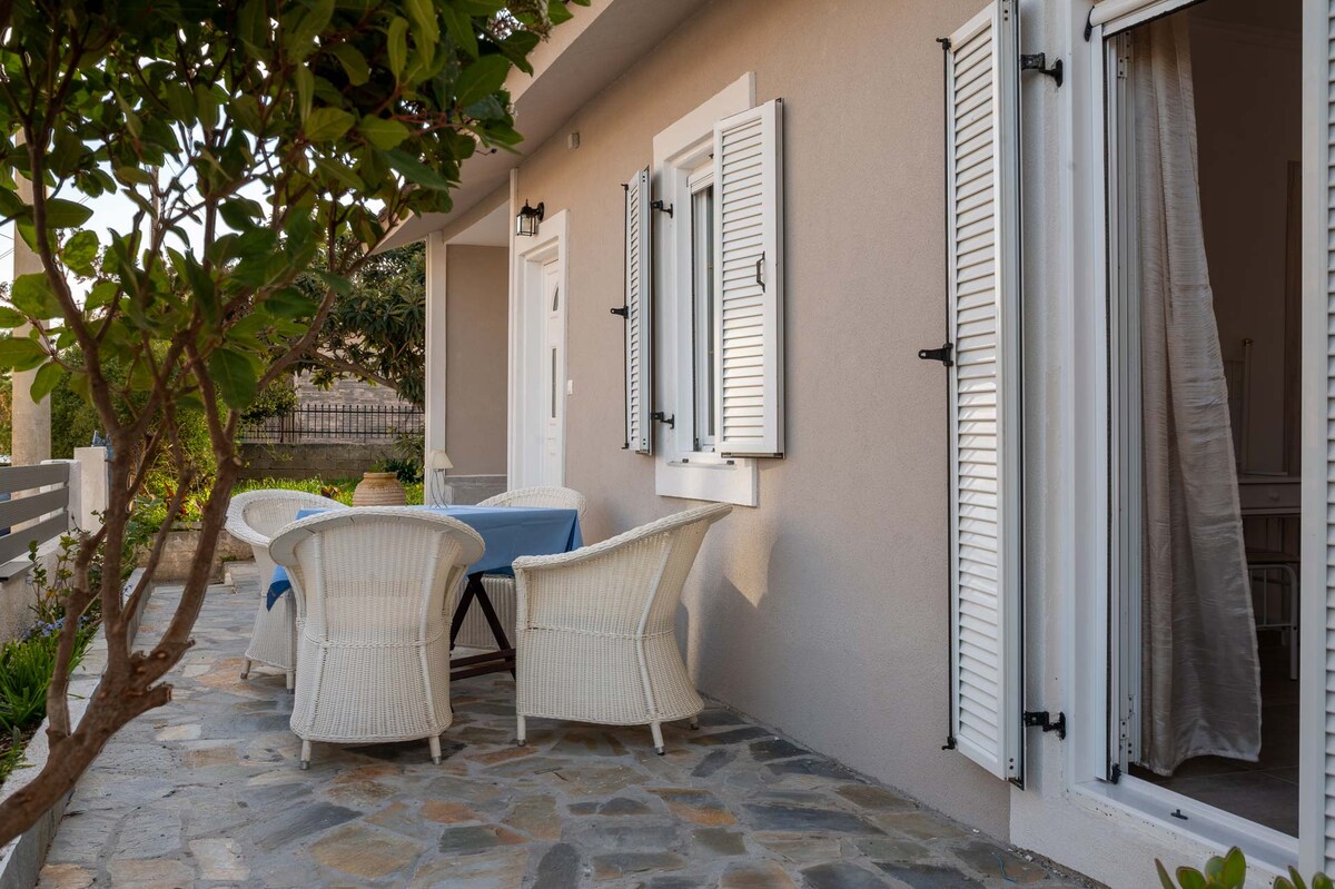 Katerina Mare en la playa de Lourdas ofrece una experiencia de alquiler única, a 5 pasos de la orilla. Disfruta de vistas impresionantes, sonidos relajantes de las olas y puestas de sol inolvidables. A solo un minuto hay restaurantes y un minimercado. Relájate en el jardín rodeado de exuberante vegetación. El acceso a la playa es cómodo a través de las escaleras cercanas. No se necesita coche, ya que el autobús local conecta con zonas populares a poca distancia a pie.