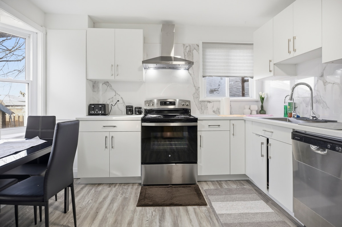 ¡Te damos la bienvenida a nuestra soleada suite sin ascensor! - A 1,6 km del St. Joseph Hosp. - A 2,6 km de UWO. - A 3,8 km de Fanshawe. - 4,8 km/DT Budweiser Garden. Esta acogedora suite independiente de 2 dormitorios se encuentra en el nivel inferior de un bungalow con su propia entrada. Los grandes ventanales inundan el espacio con luz solar y ofrecen vistas al exuberante patio trasero privado. A pocos pasos de tiendas de comestibles, restaurantes y todos los servicios, este refugio elegante y con estilo es perfecto para una escapada de fin de semana o una estancia prolongada. Ideal para familias o grupos pequeños.