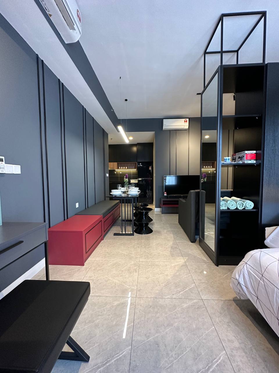 Este es un estudio tipo loft en Kuala Lumpur diseñado por un diseñador famoso que es adecuado para reuniones y estancias cortas. Esperamos crear un espacio bien diseñado para que nuestros huéspedes tengan una estancia maravillosa y memorable en el espacio. Hay una ubicación muy práctica debido a que la residencia está conectada con un centro comercial que ofrece variedad de restaurantes y tiendas.