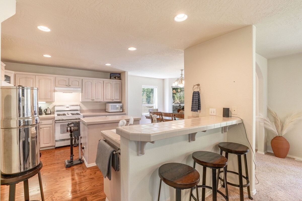 En este alojamiento se respira tranquilidad: ¡relájate con toda la familia! Fácil acceso a pie al centro de la ciudad, playas, parques y puerto. Golf a nuestro alrededor, trineo en la ciudad en Cherry Hill, esquí a 30 minutos de Kellog, Silverwood a 30 minutos. Excelente ubicación para todos los servicios y atracciones. Tranquilo patio trasero privado con chimenea (madera incluida), calentador de patio, mesa y barbacoa. Todo bajo grandes árboles de sombra en verano. Esta casa es muy adecuada para grupos grandes y familias. Hay mucho aparcamiento en la calle y un espacio en la entrada.