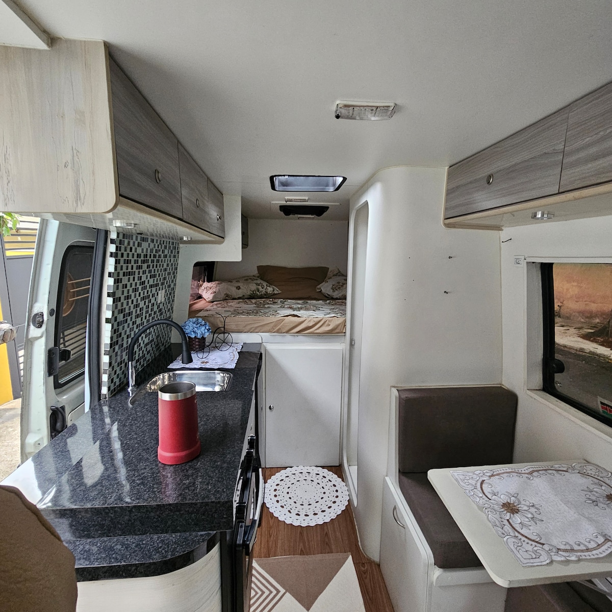 Pequeno Apartamento revestido de Pedra na parte e externa . Telhado Inclinado estilo Europeu. Há 100 metros de uma boa Padaria. No Centro da Cidade perto de tudo. Estacionamento Coberto e Portão Automático. Segurança para você e seu carro. Belo Jardim com Coqueiros e Orquídeas ao lado do Pequeno Apartamento. Ar Condicionado e Limpo. Piso de Granito. Pequena Varanda Privativa. Lavanderia com Maquina Automática.