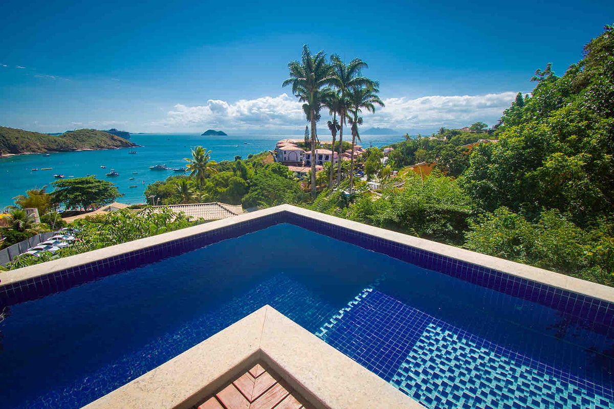 Casa de ensueño con una hermosa área social con pileta, sauna de vapor, terraza con una hermosa vista y un agradable espacio cubierto con parrilla y baño. Con dos salas de estar, una sala de televisión de 70 pulgadas, una cocina completa con comedor, un baño y cuatro cómodos baños en suite. ¡La casa tiene una vista fantástica al mar! Cerca de cuatro playas y de la Orla Bardot, que lleva a la Rua das Pedras a pie. ¡Casa extremadamente encantadora y sofisticada! Tiene capacidad para un máximo de ocho adultos y cuatro niños (de hasta 12 años).
