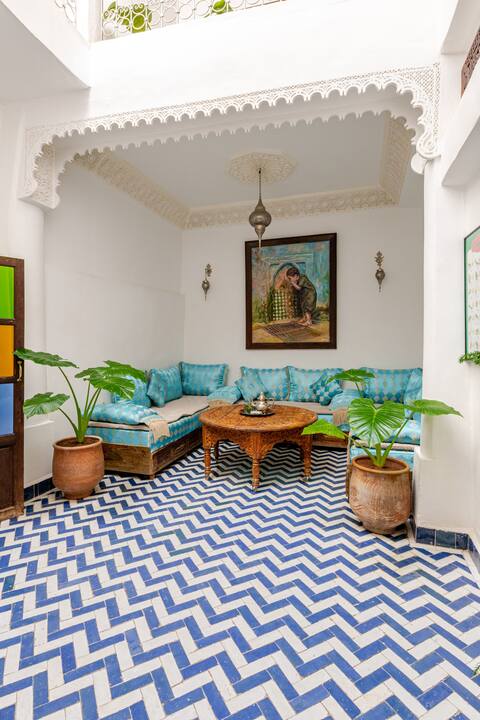¡Dar "Le Petit Bijou" es una de las casas más antiguas de Marruecos! Esta encantadora casa tipo capullo data del siglo XIV y ha sido totalmente renovada durante más de 2 años por los mejores artesanos de la ciudad con todos los materiales más nobles, como zellige (azulejos hechos a mano), madera de cedro, yeso esculpido, tadelakt y hierro forjado. Las lámparas son de bronce y están totalmente talladas a mano, los pufs de cuero y los sofás son de curtidurías locales.