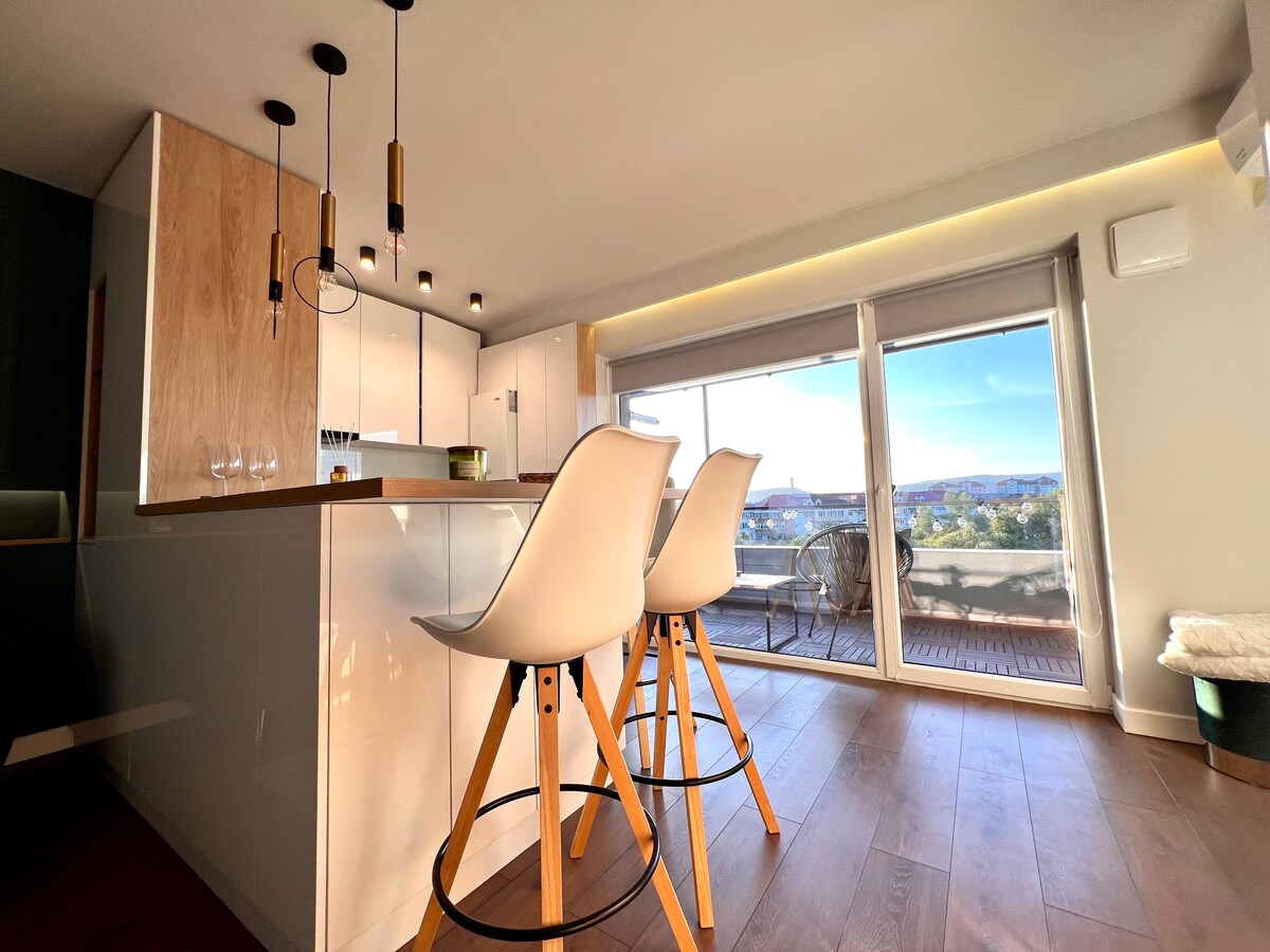 Departamento Boho Chic ubicado en Reghin, a 100 m del centro con balcón con vistas a la ciudad. El departamento incluye 1 dormitorio con cama doble, 1 sala de estar con sofá cama, un baño con ducha a ras de suelo, TV de pantalla plana, canales vía satélite, wifi gratuito, cocina equipada y la posibilidad de pedir comida en el lugar. Sovata está a 42 km de la propiedad y Targu Mures está a 33 km. El aeropuerto más cercano se encuentra en Targu Mures, a 47 km de Boho Chic Apartament.