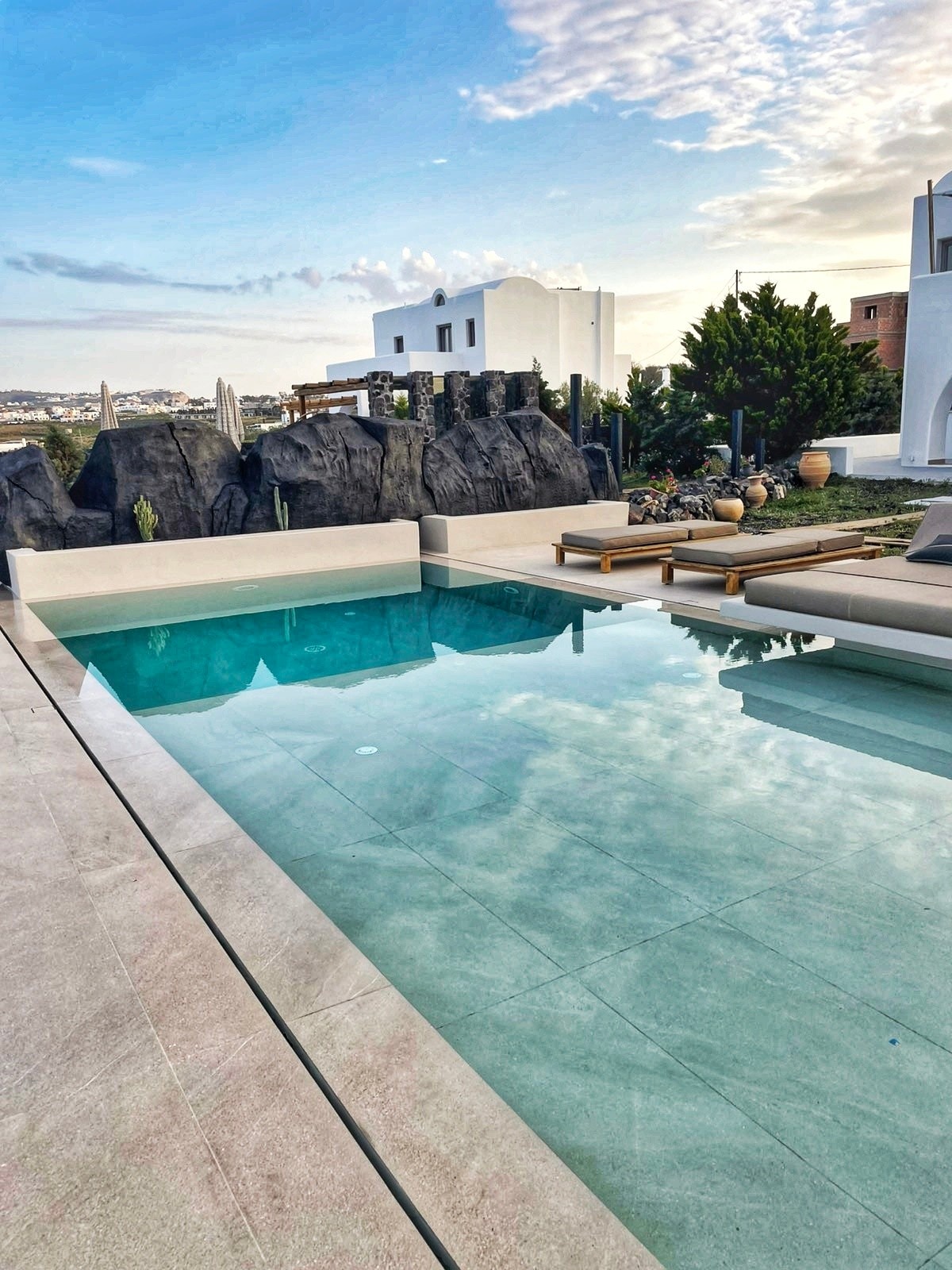 Saints Apostles se encuentra en una zona tranquila a 1,5 km de la ciudad de Fira (a 20 minutos a pie o a 2 minutos en coche). Está completamente amueblado de lujo, con vistas ilimitadas al mar en el lado este de la isla (en el lado de la playa) y al amanecer. La casa está dividida en 2 apartamentos villa, cada apartamento es privado con su propia piscina y todas las comodidades que describimos.