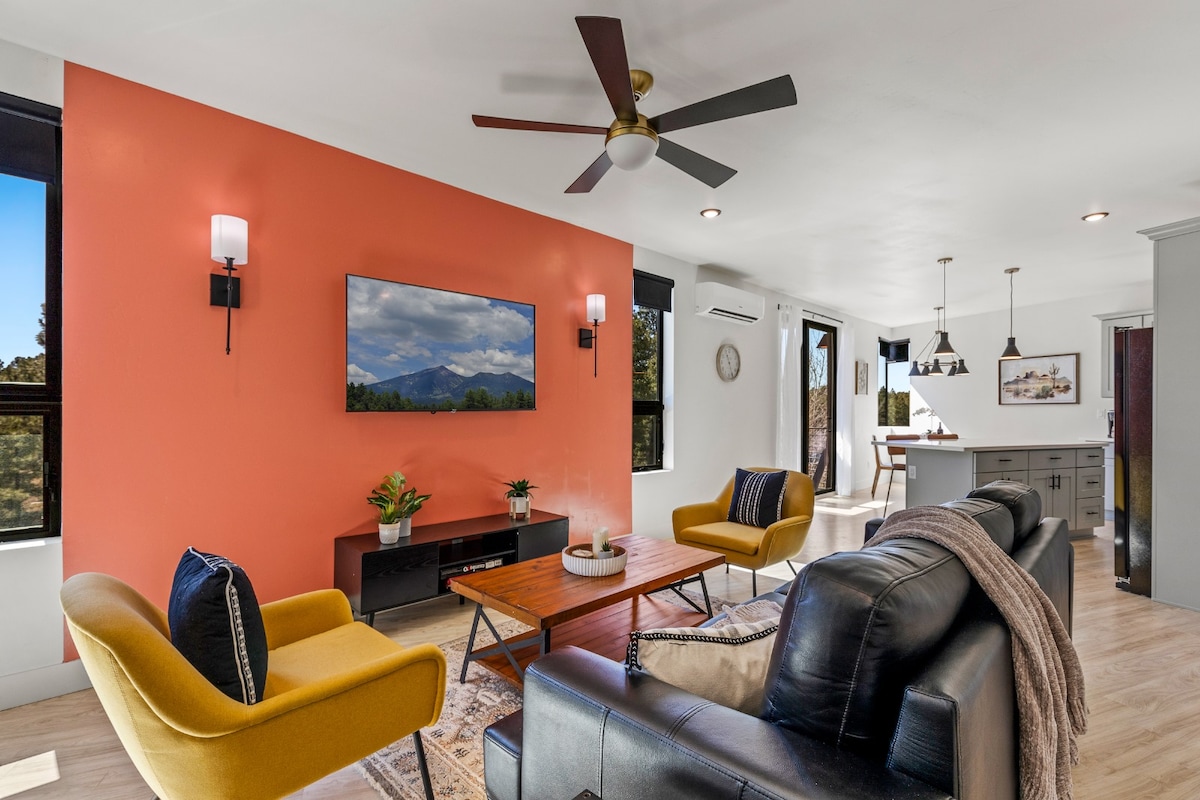 Your ideal Flagstaff basecamp near Northern Arizona University, Arizona Snowbowl and the Grand Canyon. This fully remodeled 1953 home sits minutes from pine and aspen forest trails perfect for hiking and biking year round. Ski fresh powder in winter, explore nearby lakes in summer and stroll downtown shops, breweries and galleries. Cruise Route 66, visit Lowell Observatory, then unwind under dark mountain skies beside the backyard firepit with s’mores and stargazing.