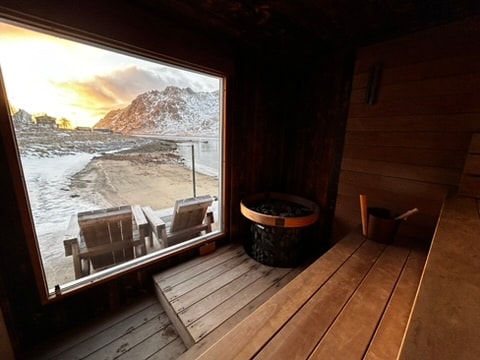 Lofoten is all about view, Location, Nature, freshness, light and the wild combination between sea and mountain. You get your own private sauna with a panoramic view of the sea and the mountains. The lovely mountain hike to Ballstadheia just 200m from the door.<br>At our cabin you live just this dream. In the midst of Lofoten you can live in this high standard Cabin, close to nature, to shops and events and an old fisherman's village- Ballstad. Welcome- we really look forward to host you!