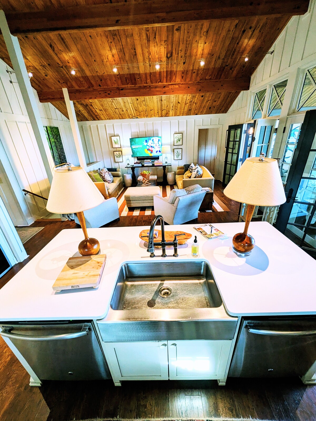 Relájate y desconecta en este alojamiento tranquilo y elegante. Ven a disfrutar de hermosas puestas de sol en tu terraza privada mientras te relajas en un jacuzzi o te sientas alrededor de la fogata. Disfruta de este acogedor refugio a solo 1 milla del campo de golf RTJ y a 3 millas de la rampa para botes más cercana. Esta casa ofrece una cocina con barra de café y enfriador de vino, TV interior/exterior, amplia ducha a ras de suelo y bañera con patas. También ofrecemos conexiones para barcos y vehículos recreativos. Disfruta de una amplia variedad de comida y entretenimiento a 10-15 minutos de distancia.