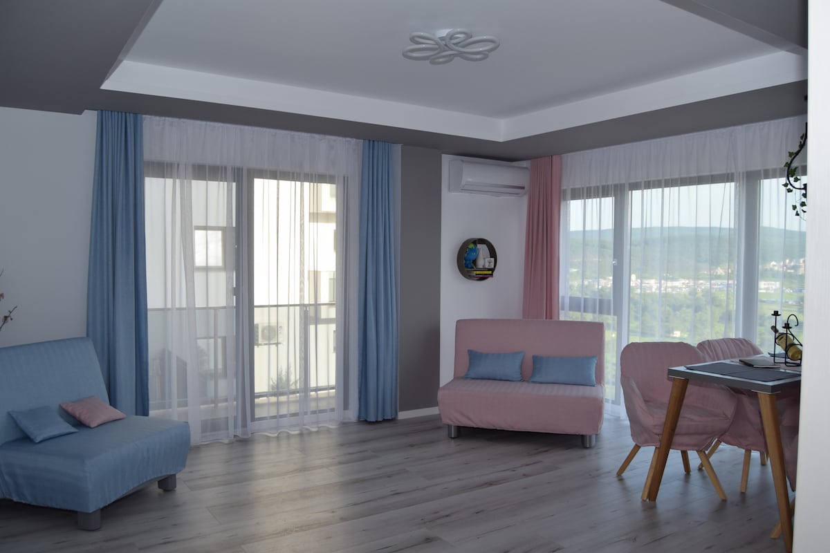 Relájate en este espacio tranquilo y elegante. Un apartamento nuevo con una vista excepcional. El lugar perfecto si buscas un refugio tranquilo, lejos del ruido de la ciudad. Todo fue cuidadosamente pensado para que puedas sentirte mimado. Adecuado para familias con niños y personas que aman la naturaleza. El bosque de Hoia está cerca. La estación de autobuses más cercana está a 20 minutos a pie, por lo que sería mejor tener un coche.