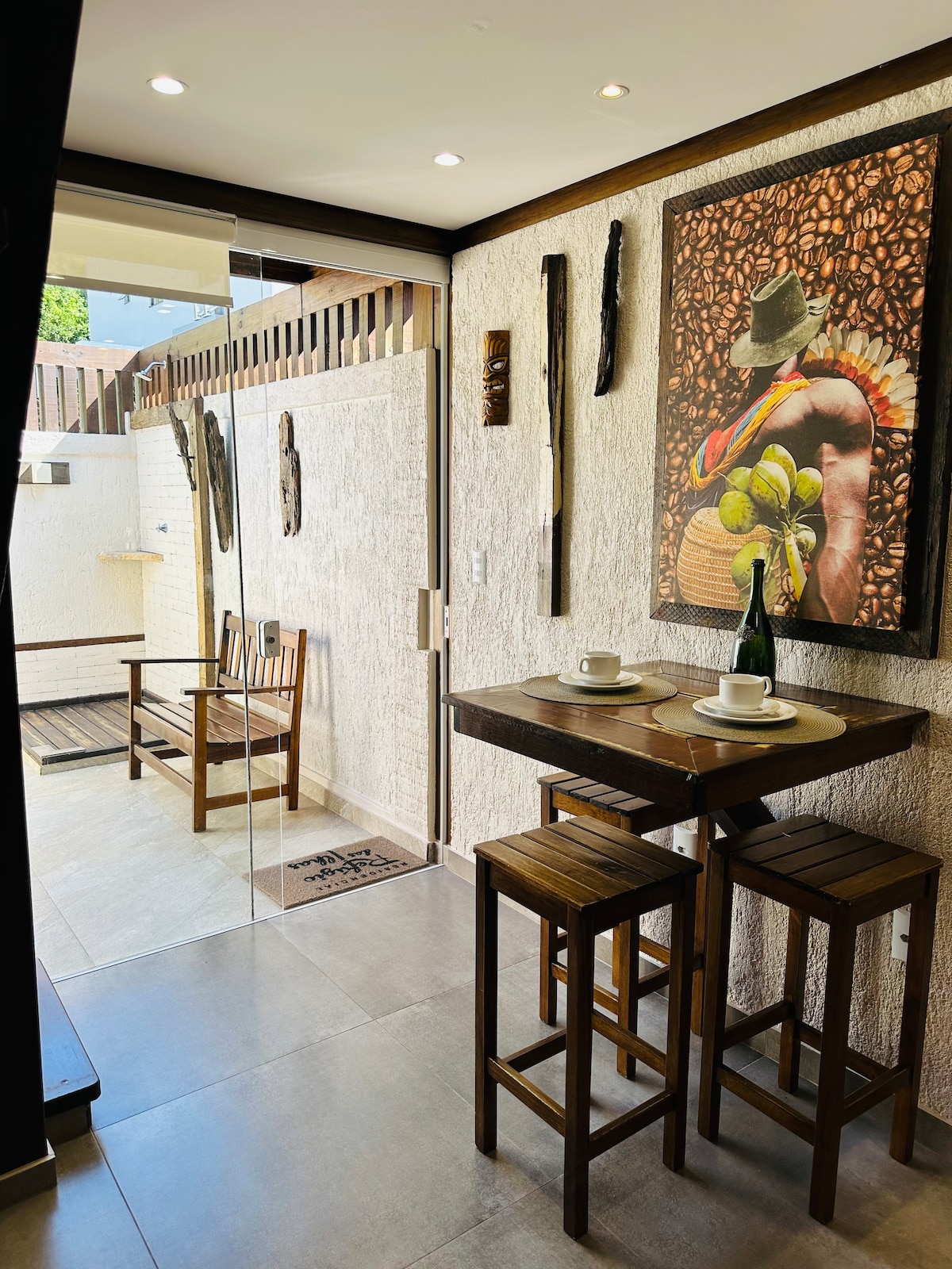Bangalô con independencia de área privada y sala de estar. Excepcionales vistas a las montañas de un bosque natural y un típico valle de ocupación de un distrito rural. Las unidades están diseñadas para proporcionarte una experiencia de tranquilidad y conexión con la naturaleza, con calidez, modernidad y exclusividad. Bangalô para 1 pareja con capacidad para 4 personas usando un sofá cama en la sala de estar, típico para el alojamiento familiar.