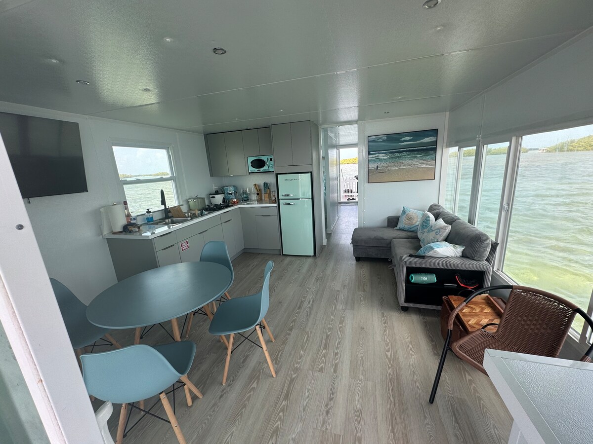 Escapate al lujo relajado de los Cayos de Florida a bordo de tu propio oasis flotante. Esta casa flotante totalmente equipada ofrece la combinación perfecta de comodidad, aventura y vida frente al agua. Despertate con amaneceres impresionantes, tomate el café de la mañana mientras la vida marina se desliza y quedate dormido con el suave balanceo del agua. Ya sea que estés celebrando algo especial o simplemente tengas ganas de una escapada única, esta casa flotante es el hogar ideal para aventuras clave y retiros tranquilos 💫