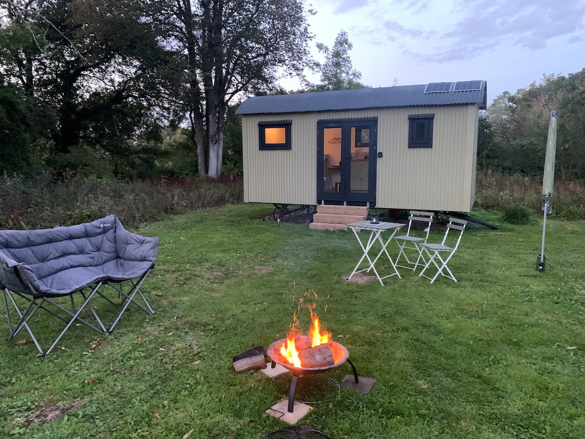 Shepherd hut, wood stove, fire pit, BBQ