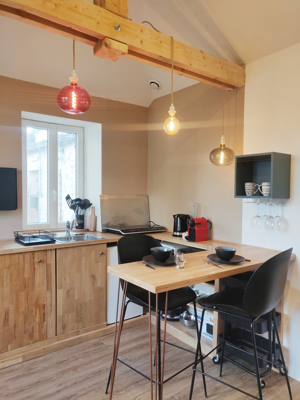 La casa de campo Franchard es pequeña pero bien equipada y tiene una dependencia práctica, con cama doble ( 140) en el entresuelo, un sofá, esquina de la cocina, grandes ventanales con vistas a un jardín japonés y dos enormes pinos con una estufa de leña para mimar :) Impuesto turístico: 91 centavos por noche/adulto. Alquiler de Crashpads: 30 euros/semana
