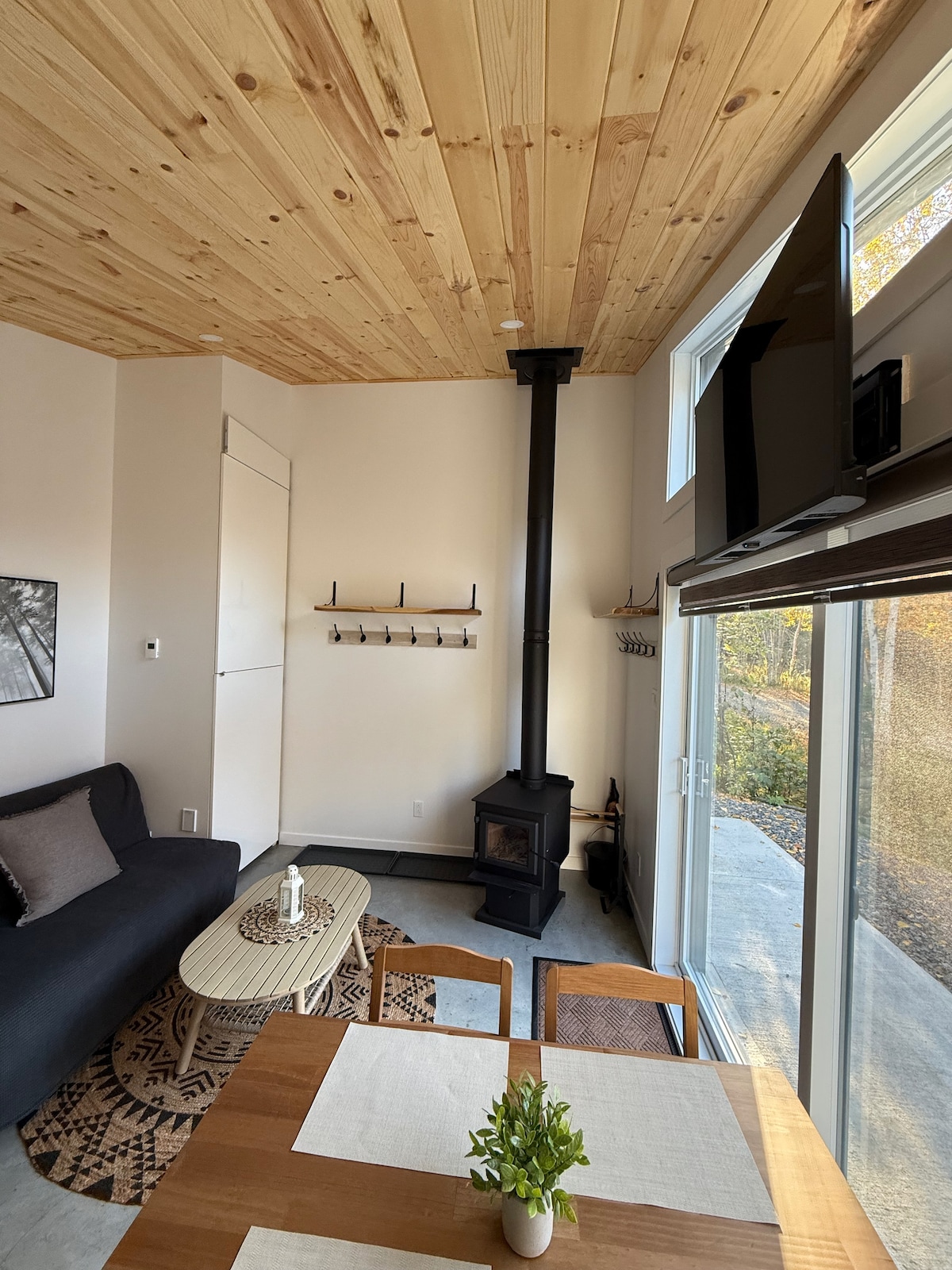 Expérience thermale privée face au fleuve — spa 4 saisons & sauna Séjournez sur un cap rocheux avec vue spectaculaire sur le fleuve. Profitez d’un spa extérieur ouvert toute l’année et d’un sauna finlandais dans un environnement calme et intime. Chalet pour jusqu’à 6 personnes avec 3 chambres confortables, cuisine équipée et ambiance scandinave chaleureuse. Accès direct à la rive, panoramas exceptionnels et tranquillité absolue. Nous acceptons les chiens!
