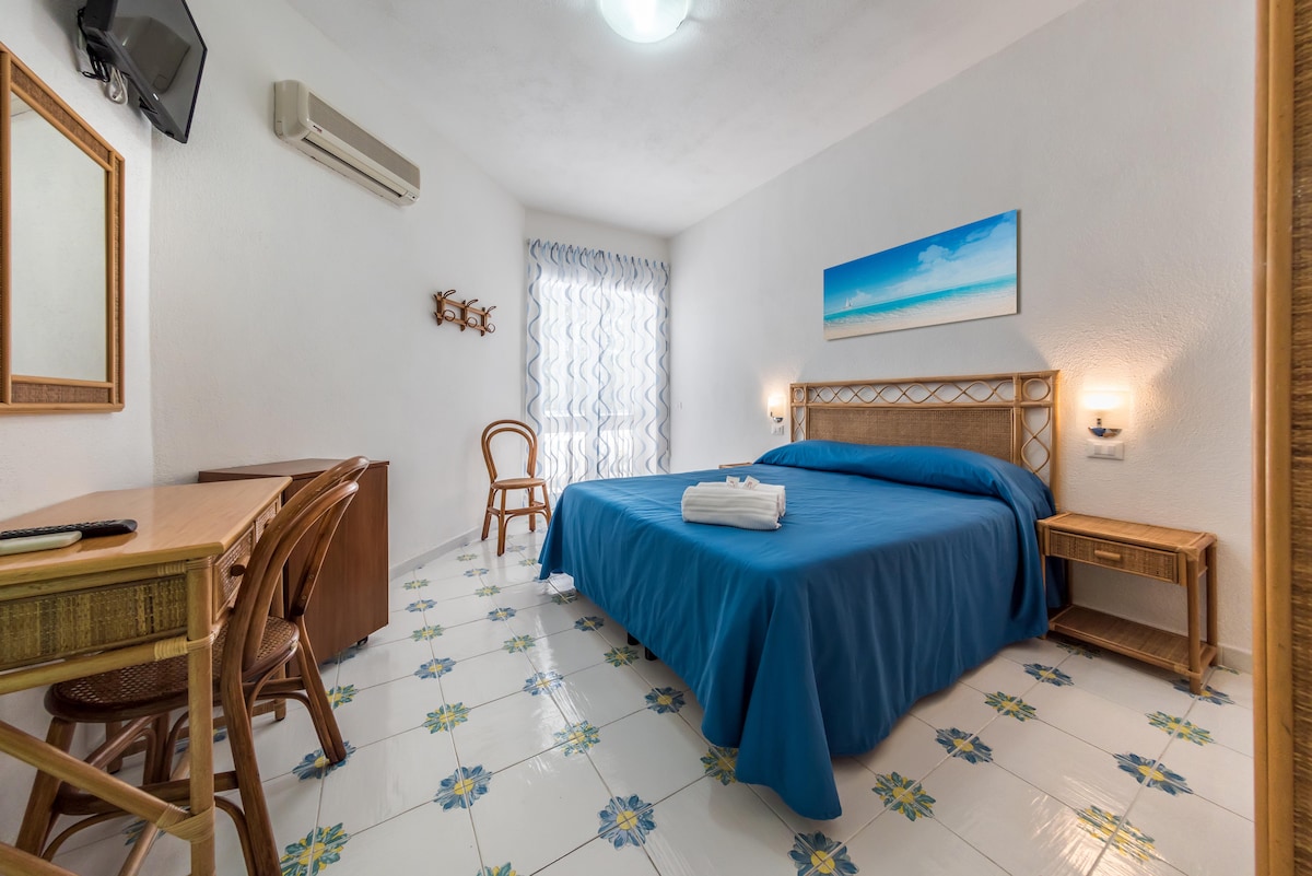 Una pileta termal, un sauna natural. Una villa exclusiva inmersa en un exuberante jardín, suspendida entre el cielo y el mar. En el encanto de la bahía de Citara, una de las más evocadoras de la isla porque está completamente expuesta al oeste: puestas de sol de ensueño con el sol rojo que se apaga en el mar abierto detrás de la isla de Ventotene, el único obstáculo para la mirada abierta al inmenso horizonte. Seis habitaciones dobles, frescas, panorámicas, cada una con su propio baño, ventiladores y mininevera.