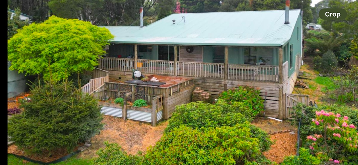 Cabaña muy cómoda de dos dormitorios (1 cama tamaño queen + 1 cama doble) con vistas al parque y a 3 minutos a pie de las tiendas locales, restaurantes, hotel, etc. A 4/5 minutos en coche del restaurante Dan Hunters "Brae". Se proporcionan sábanas y provisiones básicas. Barbacoa al aire libre, etc., wifi. 25 USD adicionales por noche por el uso del segundo dormitorio, por ejemplo, para no parejas.