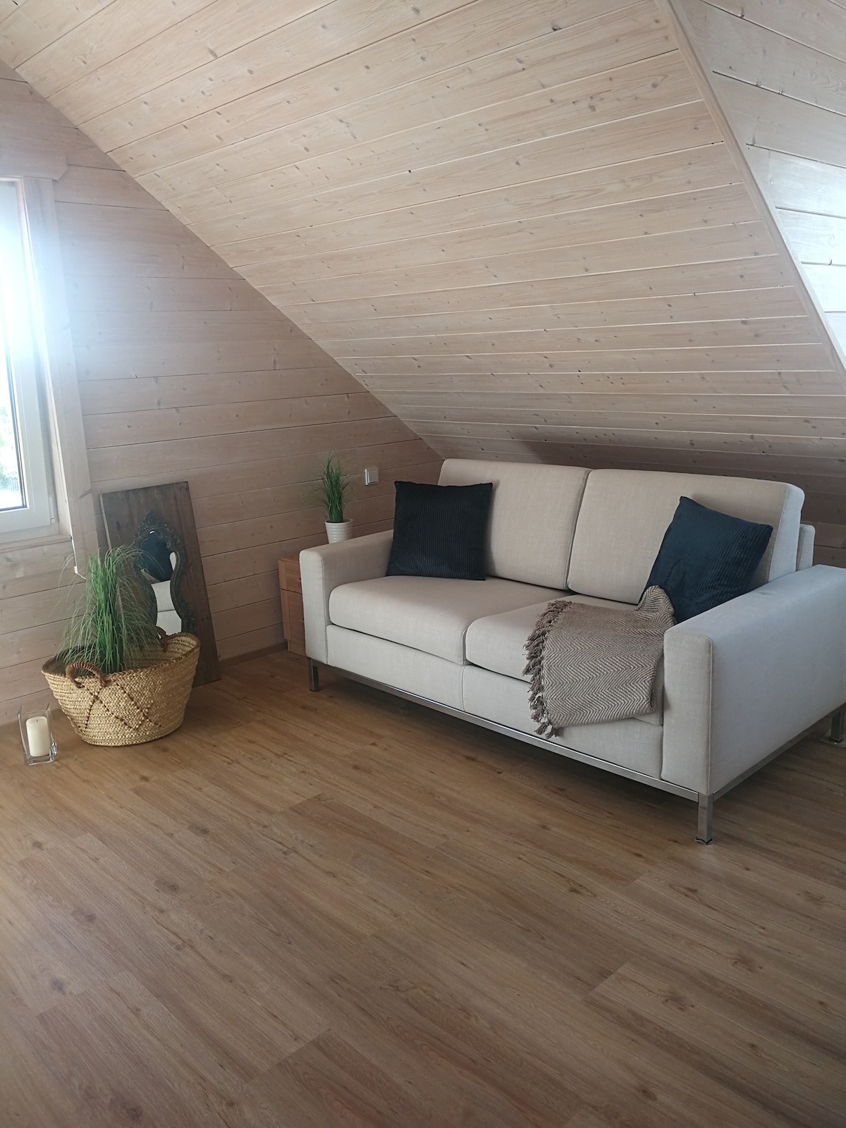¡Clima interior perfecto en la casa de madera maciza! Estimados huéspedes, en nuestro apartamento en el ático de 90 m² encontrarás dos dormitorios, cada uno con una cama doble y un sofá cama de muy alta calidad en la sala de estar en el que 2 personas también pueden dormir cómodamente. Un baño espacioso con inodoro, ducha, bañera y un baño con inodoro y ducha, Balcón y cocina equipada. ¡Función especial! El departamento no se completó hasta marzo de 2025. ¡Nos vemos! No se admiten fumadores ni mascotas