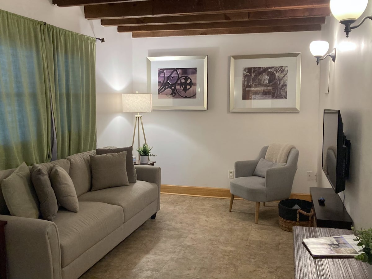 Este encantador estudio a 2 manzanas de Forsyth ofrece todo lo necesario para una escapada de fin de semana o un viaje corto de trabajo desde casa. Tenemos una cama tamaño queen y un sofá cama doble, perfecto para parejas con un niño o 3 amigos cómodos :) Ofrecemos una acogedora chimenea/calentador con una gran Smart TV encima, perfecta para una noche acogedora o para poner música y jugar antes de salir por la noche :) Tenemos wifi fuerte para aquellos que simplemente TIENEN que enviar ese correo electrónico esta noche ;). SVR-02403