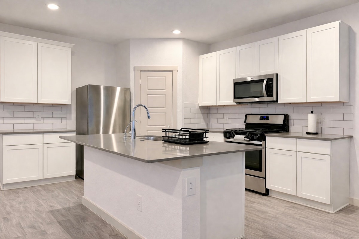 Modern and inviting home in a quiet Rosenberg neighborhood, just minutes from Hwy 59/69 and a short drive to Sugar Land and Houston attractions. Enjoy an open living area with smart TV, a fully equipped kitchen, and 4 comfy bedrooms with fresh linens. Two bathrooms, high-speed Wi-Fi, and driveway parking make it perfect for families, business travelers, or weekend getaways. Relax in the private fenced backyard after a day of exploring. All four bedrooms include a Smart TV.