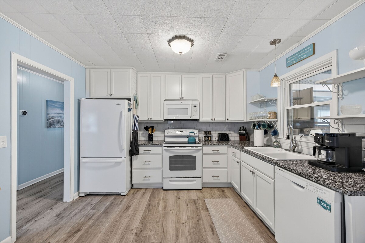This spectacular ocean view condo with top notch renovations is just steps from the beach. Be swept away by the view of the rolling waves, whitecaps, and the OKI Pier as you relax and enjoy a beverage on the balcony. You will also be treated to a breathtaking sunset as the colors change each minute across the sky. Retire to the living room and rest your tired feet on a comfy sectional sofa as you interact with others in an aesthetically pleasing open floorplan setting.