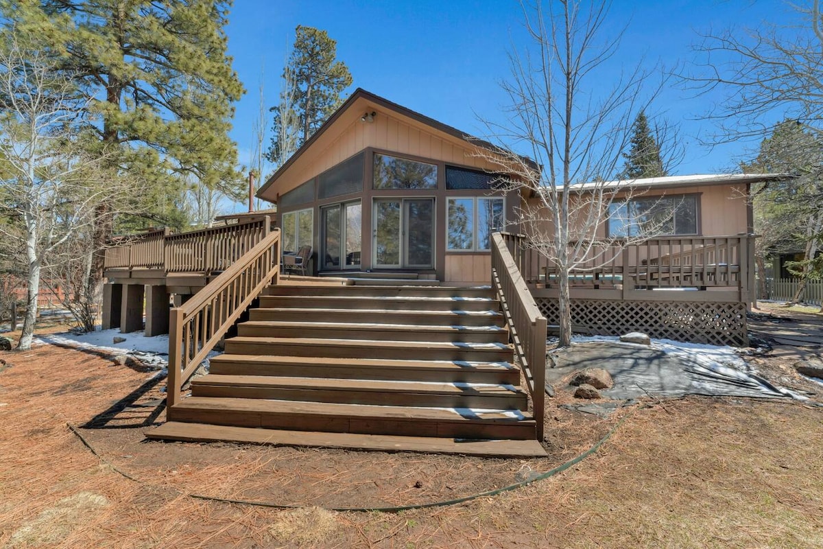 Backcountry Bungalow = changing color leaves & calls for snow, book! Video walk-through by searching Backcountry Bungalow - Flagstaff, AZ. Enjoy our 2 bdrm, 2 bath single-story home that's surrounded by pines & views of San Francisco Peaks! Our deck features a 6-seater hot tub! Our home is kid-friendly with a foosball table, toys & games as well as a neighborhood playground. We are centrally located, making this the perfect home for your adventures (NAU, AZ Snowbowl, Sedona & Grand Canyon)!