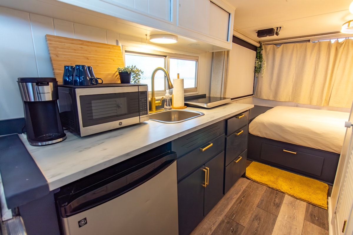 Descansa, relájate y rejuvenece en este alojamiento único y relajante. Esta conversión de garaje privada de 400 pies cuadrados está repleta de comodidades. Bañera de hidromasaje, bidé, sillón de masaje, cama tamaño king con colchón de espuma viscoelástica, TV de 65 pulgadas, cine en casa, wifi de fibra óptica, cocina pequeña, barra de café y té, armario de cedro, iluminación regulable, carga de vehículos eléctricos de nivel 2, estacionamiento en la entrada, acceso codificado, lavandería, 2 toallas de lujo y 2 albornoces de spa. La televisión inteligente y el proyector tienen Hulu, Prime, Apple TV y Netflix para uso de los huéspedes.