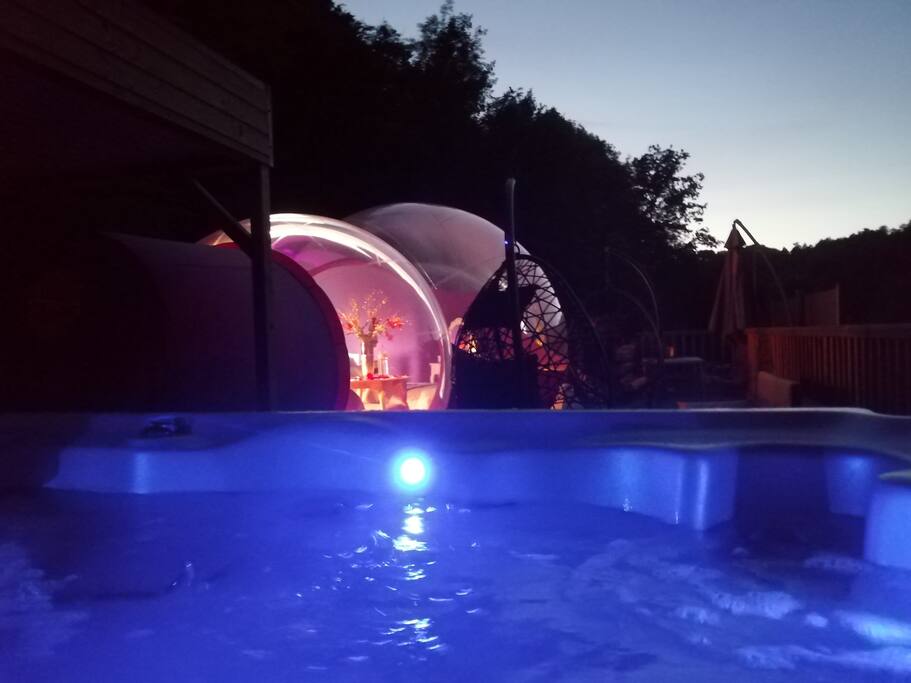La Bulle des Anges es una esfera transparente que te espera para un momento mágico, rodeada de espacios verdes con terraza, spa y hammam totalmente privatizados... en un entorno preservado. Duerme con la cabeza en las estrellas, en tu burbuja con vista al cielo y todas las comodidades de una habitación de hotel. Contemplar la puesta de sol, las estrellas y la salida del sol al amanecer en una burbuja que combina comodidad y proximidad al aire libre. La burbuja es una experiencia memorable, que ofrece un refugio muy lujoso y encantador para los amantes de la naturaleza. La burbuja es un alojamiento único enteramente privatizado sin ningún tipo de opuesto. El spa privado es de libre acceso y sin restricciones de tiempo... así como todo el resto de equipamientos, su terraza anexa, su baño, su hammam es privado, etc... La entrega de llaves se hace en mano. Vivimos cerca del alojamiento, brindamos asistencia en caso de necesidad durante toda la estadía. Ubicado en las alturas del bonito pueblo de Illoud, ubicado en el departamento de Haute-Marne y la región de Grand-Est en el corazón de la naturaleza. Plaza de aparcamiento al aire libre en el sitio. Bajo petición simple: Ofrezco menús caseros opcionales para reservar con antelación si lo desea.Además de varias otras opciones como una decoración romántica con pétalos de rosa y velas LED para un ambiente más acogedor y envolvente por ejemplo...