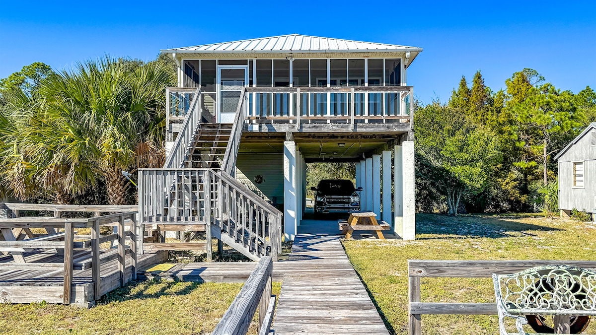¡Paradise Point es una casa frente a la playa situada a orillas del golfo de México! Esta casa de playa difícil de encontrar encarna la relajación y la soledad. La playa de arena blanca de la costa olvidada de Florida está justo enfrente. Uno de los lugares más increíbles en kilómetros, las vistas y la tranquilidad no tienen rival. Esta es una casa de playa elevada y actualizada con una nueva suite de electrodomésticos, encimeras de granito personalizadas y más actualizaciones. Despiértate con el sonido de las olas en la playa a las puertas de tu alojamiento.