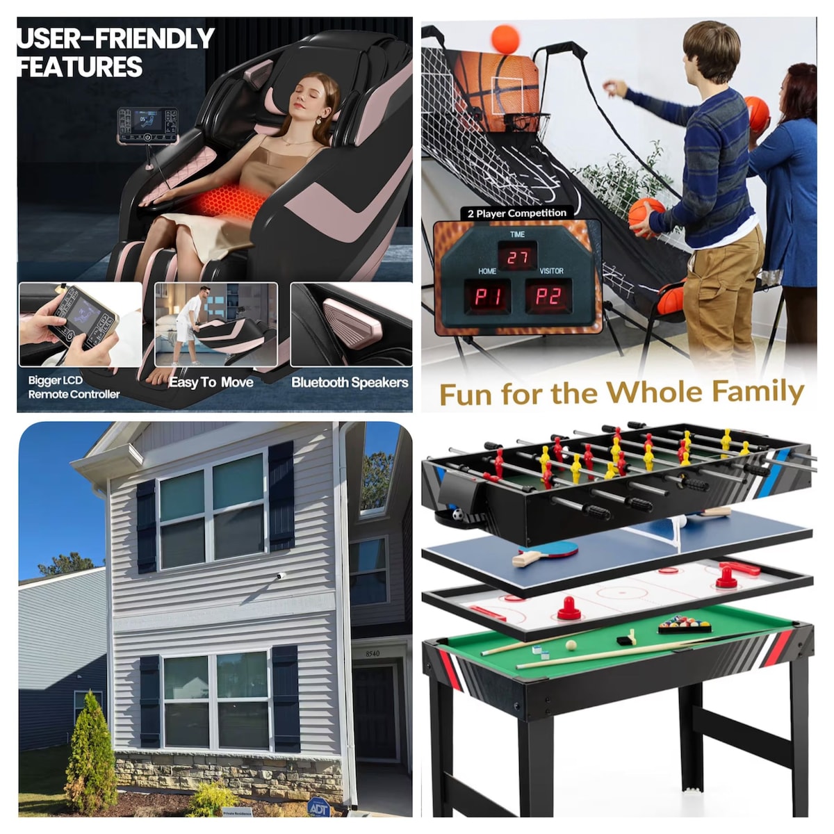 Relax with the whole family at this luxurious, brand new, safe, and serene place to stay. All rooms are modernly and uniquely styled for your comfort and with dedicated workspaces. 3 bedrooms, 2.5 baths plus, massage chair an extra office space. You also have a bonus game room with arcade basketball 🏀 , pool, chess, scrabble, monopoly, card games, and skip activities . How about the bedrooms? So beautiful, with mordern designs , speakers, charging ports, lighting, etc You will love it!!