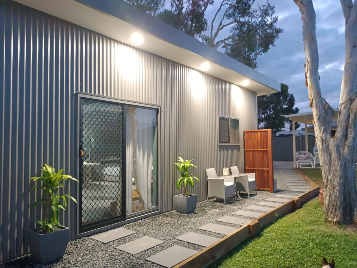 Welcome to our lovely, fully self-contained studio apartment — your own tropical sanctuary. Fresh and clean, the studio has everything you need for a comfortable and relaxing stay. The studio is located in the backyard of our home, converted to host guests. You’ll enjoy a private entrance and your own peaceful space, separate from the main house. Step outside to a tranquil deck, perfect for enjoying a cuppa or an evening glass of wine. 🚭 Please note: This is a non-smoking property.