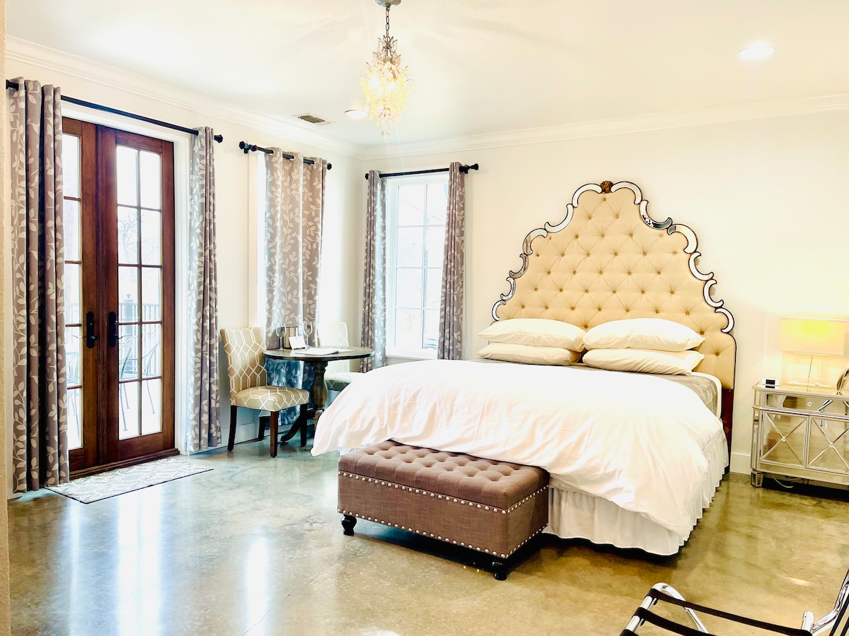 Escápate a nuestro encantador Pecan Lodge independiente recientemente renovado en The Meyer Hotel, ubicado a lo largo del tranquilo Cypress Creek. Este acogedor refugio ofrece una escapada serena y privada, perfecta para cualquiera que busque una escapada tranquila. Disfruta de los hermosos jardines, incluida una piscina. Tu habitación está equipada con cafetera, TV inteligente, microondas y mininevera. Estamos ubicados a poca distancia a pie de tiendas, restaurantes, salas de cata de vinos y bares del centro de la ciudad.