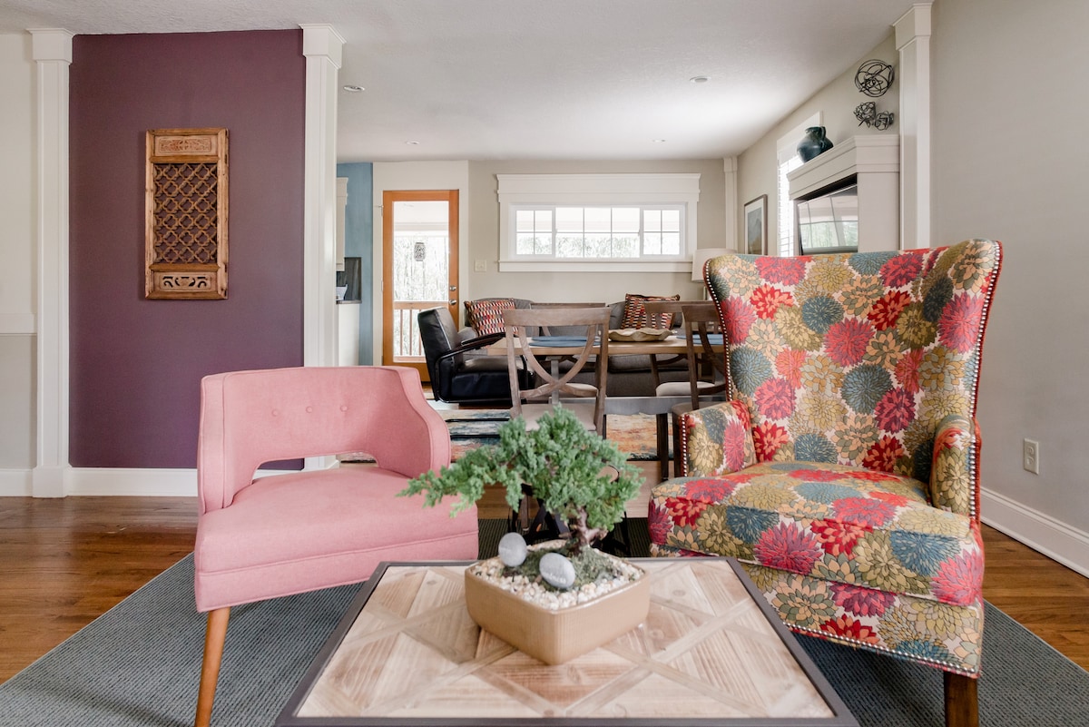 ¡Te damos la bienvenida al Bamboo Bungalow! Si buscas esa pequeña joya que está a solo unos minutos del centro principal de West Asheville y aún más cerca de los parques y del río French Broad, ¡la encontraste! Situado en una calle tranquila, este alojamiento tiene capacidad para 6 personas y cuenta con todo lo necesario para que te sientas como en casa. Camas cómodas, muchos asientos tanto en el interior como en el exterior en los porches cubiertos, además de algunos detalles adicionales para que tu estancia sea especial. ¡Estaremos encantados de alojarte!