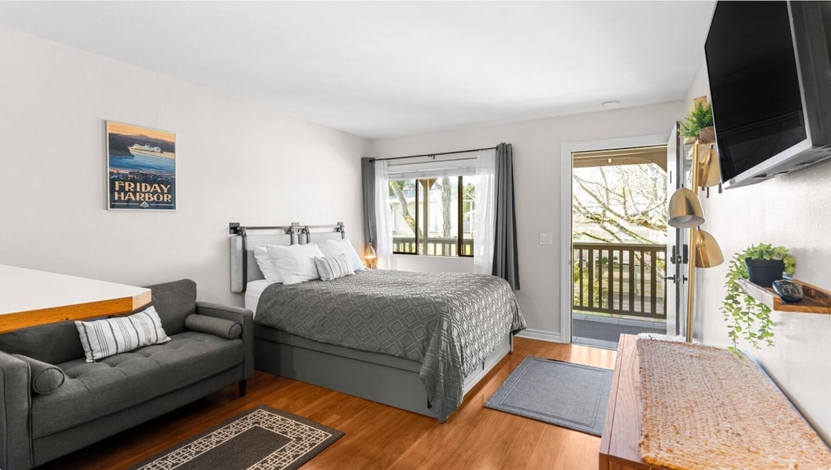 Te damos la bienvenida a «The Clamshell». Ubicado en la ciudad de Friday Harbor en la hermosa isla de San Juan, Washington. Nuestro apartamento tipo estudio es una unidad en el último piso a poca distancia de los transbordadores del estado de Washington y del centro de Friday Harbor. Este estudio es pequeño pero poderoso. Cuenta con cocina completa, baño y capacidad para 2 personas. Aparcamiento gratuito en el lugar, y esta unidad tiene **AIRE ACONDICIONADO**